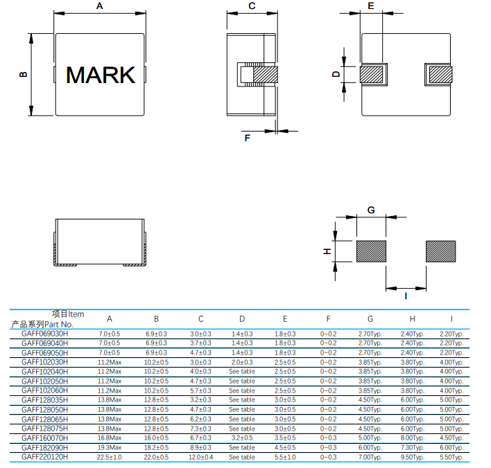 一:扁平线圈电感GAFF-Y 产品特征