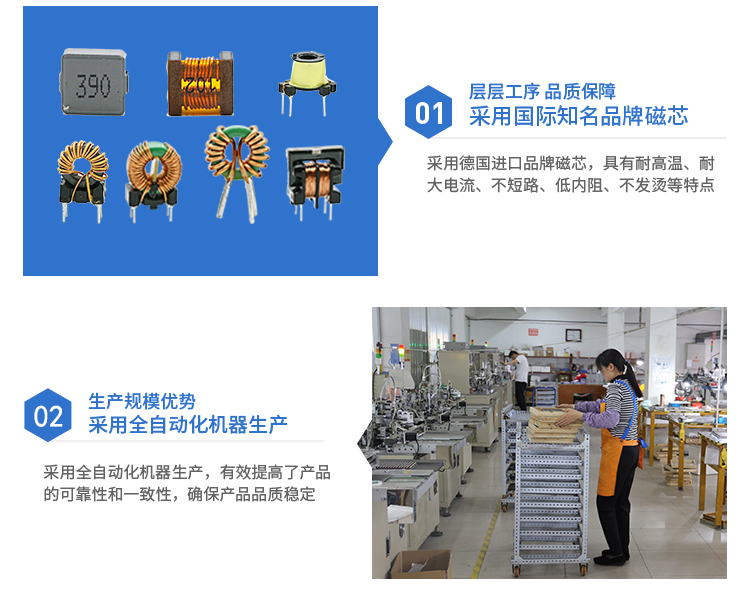 采用台产、日产进口磁芯和骨架,确保电感产品拥有更好的导电性以及耐电流性