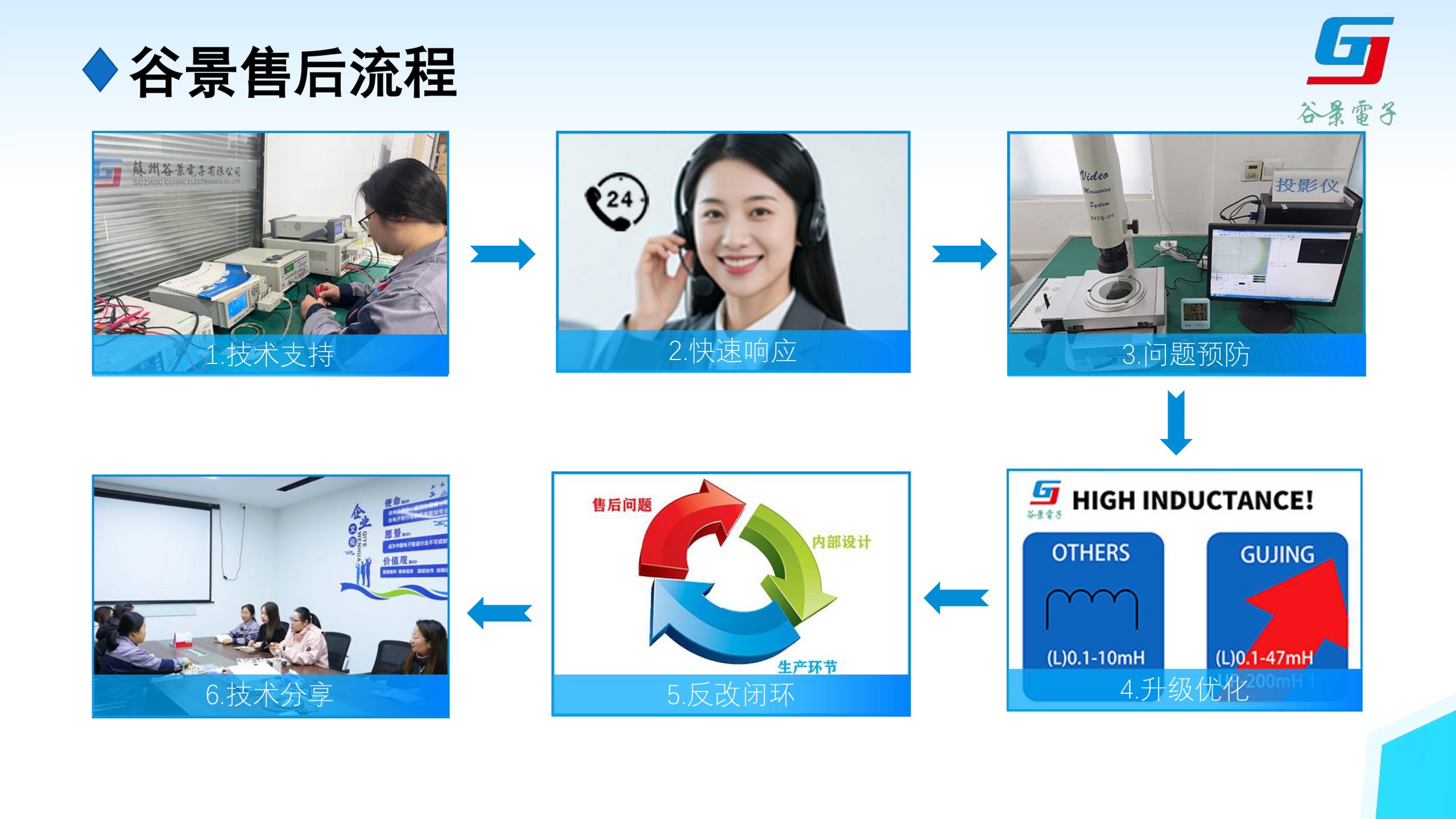 谷景不仅是一家电感制造商,更是一家具备系统化品质管控能力的技术服务商。当客户遇到上板短路等品质异常时,我们不会急于下结论,而是按照一套成熟的流程高效推进: